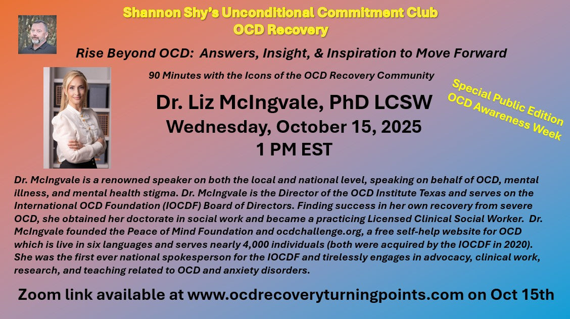 Shannon Shy is a retired Lieutenant Colonel from the United States Marine Corps Reserve and a Certified Peer Recovery Specialist, shares his journey of overcoming severe OCD diagnosed during active duty. A former President of the International OCD Foundation and a Keynote Speaker at the 2010 annual IOCDF conference, Shannon provides many recovery resources for people suffering from OCD. The author of three books on OCD recovery and producer of an online OCD recovery course, he operates a members-based portal that contains a wealth of resources for those suffering from OCD, and provides virtual peer support worldwide, drawing from personal experiences and professional credentials. Shannon's effective peer support work offers hope, insights, and motivation for OCD sufferers to transform their perspective and lead fulfilling lives.
