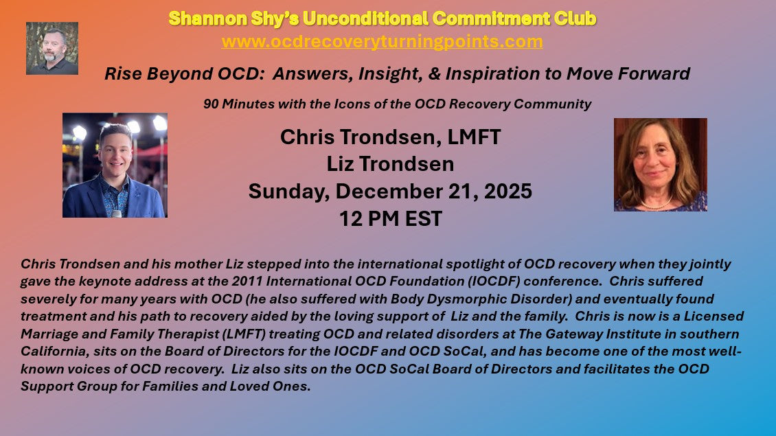 Watch the Interview! This a powerful and impactful story of love, resilience, inspiration and reclaiming freedom after suffering at the bottom of OCD's hell pit! Warning: Contains content that may be unsettling for some viewers. https://youtu.be/RQpCeTPUZ1o